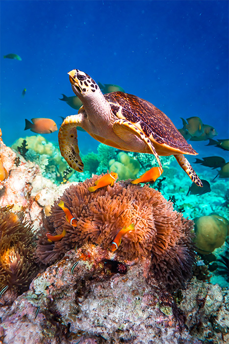 Desayuno y tour privado al Coral Reef donde podremos hacer snorkel, maravillarnos con su fondo marino, nadar con tortugas, peces payaso y delfines en su hábitat natural.